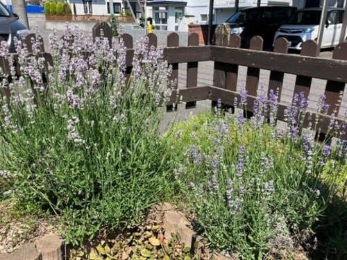 自宅の庭がラベンダーで花盛り。 ラベンダーにも種類があり、白っぽいものや、紫の濃いもの。 花弁の小さなもの等あります。 放っておくと際限なく増えるので間引きします。 数種類まぜて、玄関にかざりました。 結婚記念日のお花は、1週間経ったけど元気で…
